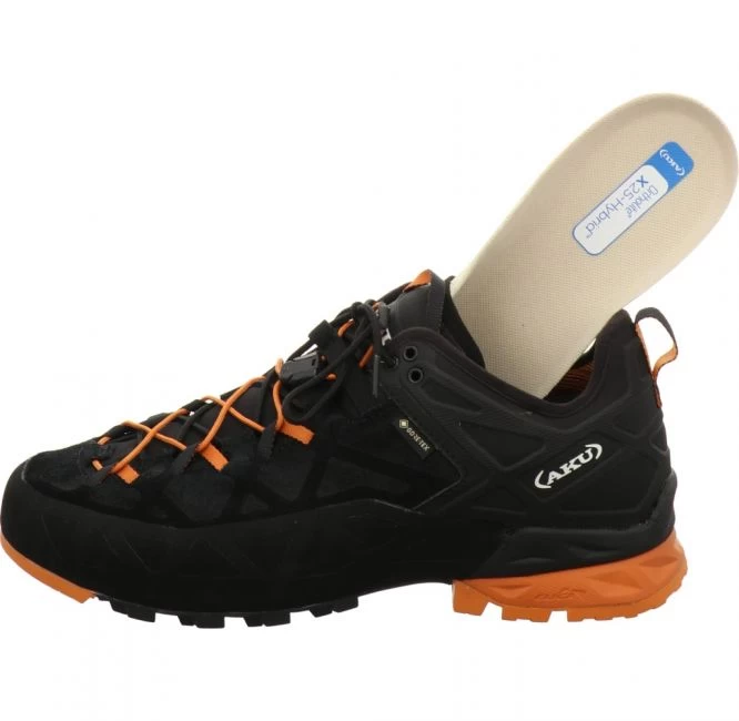 Leichter Fast-Hiking Schuh von AKU. Das Obermaterial mit gekreuzter Ripp-Struktur und 3D-Print-Schicht besteht aus robustem Textil. Das Futter verfügt über eine atmungsaktive, wind- und wasserdichte GORE-TEX® Membran. Das Ortholite® X25-HybridT Fußbett ist austauschbar. Für Ihren persönlichen Gehkomfort können Sie Ihre eigenen Einlagen verwenden. Dieser Schuh ist mit der Vibram® Traction Lug Technologie ausgestattet und verfügt über das exklusive AKU Dual Fit System. Sie können den Schuh über zwei verschiedene Schnürungen optimal an Ihren Fuß anpassen. Das AKU Elica Natural Stride System verbessert die biodynamische Leistungsfähigkeit. Ein zuverlässiger Schuh, selbst auf den schwierigsten Trails.