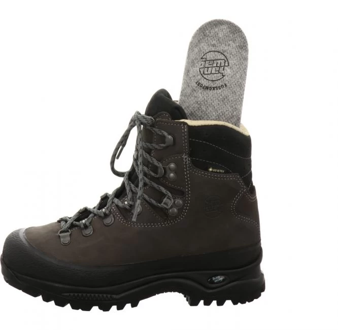 Klassischer Trekkingschuh von Hanwag in bequemer Leistenform aus hochwertigem Nubuk Leder. Ein vielseitiger Schuh, der von leichten Tagestouren bis hin zu anspruchsvollen Wanderungen alles mit macht. Die wasser- und winddichte GORE-TEX ® Membran sorgt jederzeit für warme und trockene Füße und punktet zudem mit hoher Atmungsaktivität. Die Vibram ® Laufsohle ist rutschfest, haltbar und überzeugt durch besten Halt auf verschiedensten Untergründen. Der hohe Schaft mit Ein-Blatt-Konstruktion stützt den Knöchelbereich optimal. Die Innensohle ist herausnehmbar. Für Ihren persönlichen Gehkomfort können Sie Ihre eigenen Einlagen einsetzen. Ein robuster, bequemer und vielseitiger Schuh aus dem Hause Hanwag. Einsteigen, wohlfühlen und auf zu neuen Abenteuern!