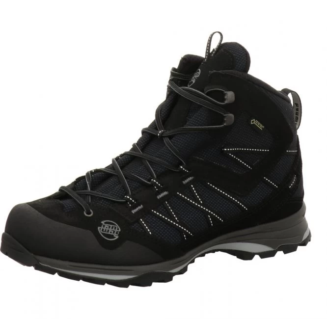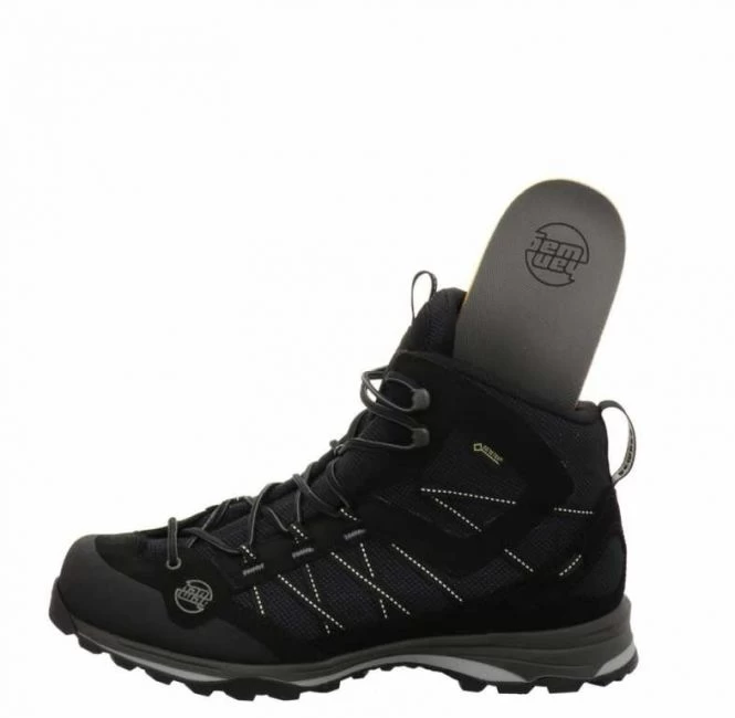 Hanwag Belorado MID Bunion Lady GTX® Die neue INNOVATION für HALLUX-VALGUS mit GORE-TEX®! Aus der Hanwag Trail & Travel Serie – geeignet für ausgedehnte Wandertouren, Reisen und Freizeit. Mittelhoher, sportlicher Trail-Schuh aus leichtem aber stabilem Materialmix – mit Bunion-Leisten für Wanderer mit Hallux Valgus, der ausreichend Platz für das Großzehgrundgelenk bietet. Durch die neue Konstruktion im Ballenbreich wird die Gefahr von Druck- und Scheuerstellen verhindert. Dafür setzt die Firma Hanwag ein besonderes Gore-Tex® Laminat ein, dass in allen Richtungen dehnbar ist. Kombiniert mit der Gore-Tex® Klimafutter wird die Atmungsaktivität und Wasserdichtigkeit garantiert. Ein optimaler Fersensitz wird durch die Fersenzugverstärkung erreicht. Der Schaftbereich bietet einen stabilen Halt durch die Nahtverstärkungen und dem Einsatz von Cordura. Einen idealen und sogleich komfotablen Einstieg ermöglicht die Zungenlasche. Sie lässt sich sehr weit öffnen und wunderbar auf den Mittelfuß anlegen – perfekt für starke Füße mit einen hohen Spann. Das sehr griffige Profil der Vibram® Multifilm Profilsohle garantiert einen guten Halt – auch auf etwas unwegsamerem Gelände.