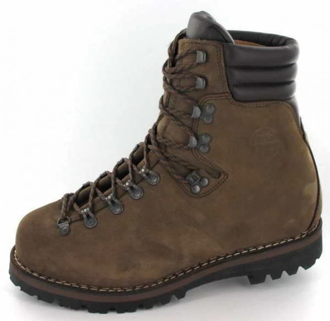Stabiler zwiegenähter Bergschuh der Schuhmanufaktur Hanwag. Berg-Nubuk gewachst (Croupon-Leder) ohne seitliche Nähte – Lederfutter – griffige VIBRAM° Breithorn Sohle – echt zwiegenäht. Bequemer Bergschuh und stabiler Wanderschuh mit langer Lebensdauer, für Steigeisen mit Riemenbindung geeignet.