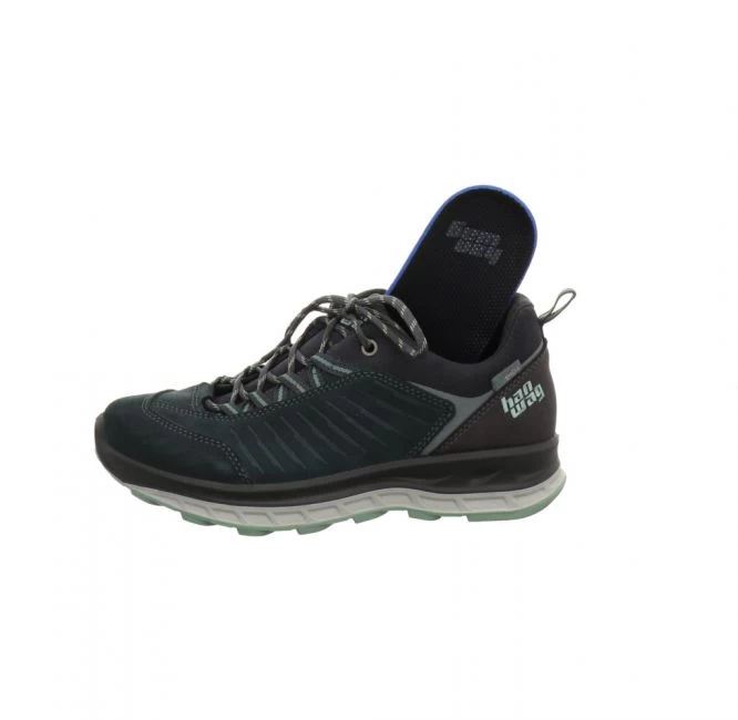 Multifunktioneller Leichtwanderschuh von Hanwag. Das Obermaterial besteht aus einem hochwertigen Mix aus Perwanger Leder und zu hundert Prozent recyceltem Oberstoff. Die atmungsaktive, wind- und wasserdichte PFC-freie PU-Membran sorgt für warme und trockene Füße. Das Fußbett ist austauschbar. Für Ihren persönlichen Gehkomfort können Sie Ihre eigenen Einlagen einsetzen. Mit der rutschfesten Terragrip Laufsohle mit 4 mm Profiltiefe und großen Stollen haben Sie jederzeit besten Halt. Ein erhöhter Sohlenrand aus stabilisierendem PU bietet zusätzlichen Halt rund um Fuß und Ferse. Dieses Modell ist Ihr perfekter Partner für Wanderungen mit leichtem Gepäck auf unterschiedlichsten Wanderwegen, nassen Mittelgebirgen bis hin zum sandigen Küstenwanderweg. Sportlich, modisch, bequem und komplett in Europa gefertigt.