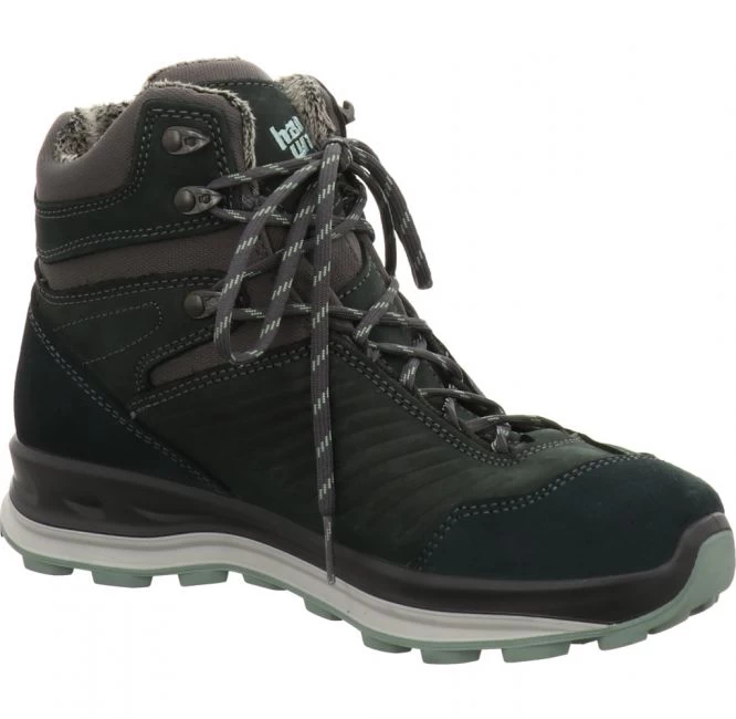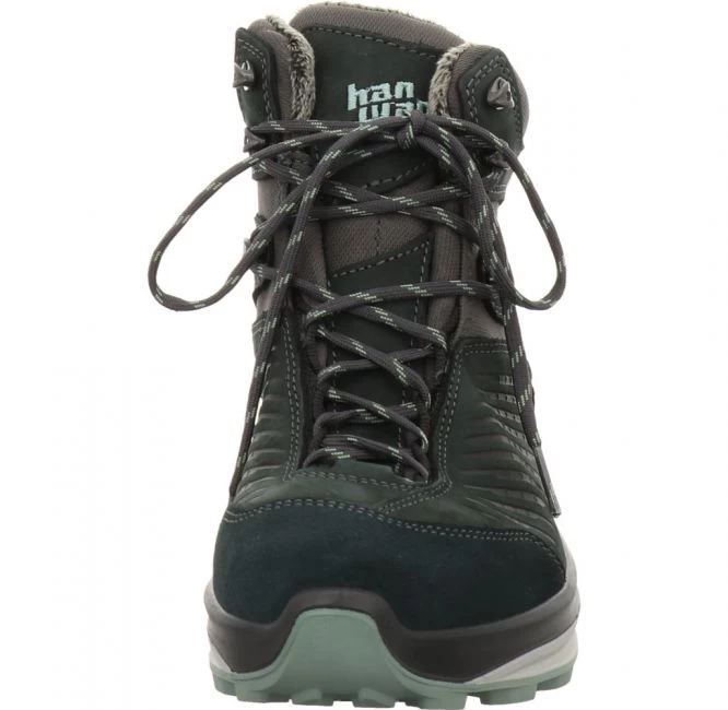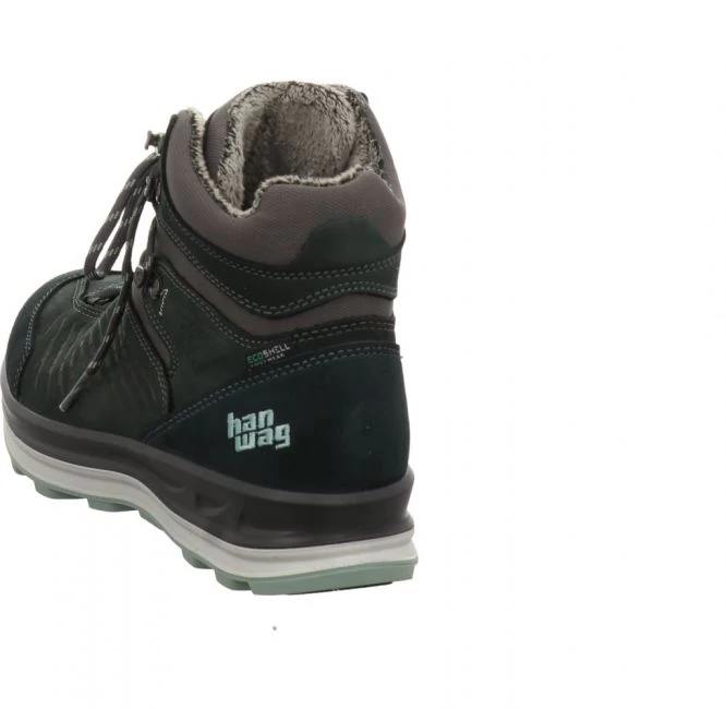 Multifunktionaler Winterwanderschuh von Hanwag. Das Obermaterial besteht aus einem Mix aus Textil, Nubuk- und Veloursleder. Das Obermaterial wird zusätzlich mit einer PFC-freien Hydrophobierung versehen. Er verfügt über eine wasserdichte und PFC-freie Hanwag EcoShell Membran. Die gut isolierende Merinowoll-Einlegesohle ist austauschbar. Für Ihren persönlichen Gehkomfort können Sie Ihre eigenen Einlagen einsetzen. Die Hanwag Fiberbrake Sohle mit Grip-Einsätzen mit Glasfasern sorgt an mit Gewicht belasteten Stellen für beste Traktion. Die spezielle Gummimischung bleibt auch bei kalten Temperaturen weich und griffig. Die stabilisierende 3D-Zwischensohle dämpft optimal. Das Futter besteht aus 70 Prozent recyceltem Polyester. Dieses Modell wurde zu 100 Prozent in Europa produziert. Ihr perfekter Begleiter für einen aktiven Alltag im Winter.
