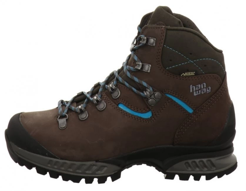Frauen-Wanderschuh bzw. Trekkingschuh über schlankeren Damenleisten gefertigt, Nubukleder gewachst, Gore-Tex°-Klimafutter, besonders leichte und stabile VIBRAM° AW-Integral Sohle mit viel Flexibilität und Dämpfung für ein gutes Gehen am Berg, weniger hoch geschnittener Schaft für viel Bequemlichkeit, ohne viele Nähte gefertigt, herausnehmbares Fußbett. Super bequemer Wanderschuh für Trekking und Bergwandern, sehr gute Paßform!