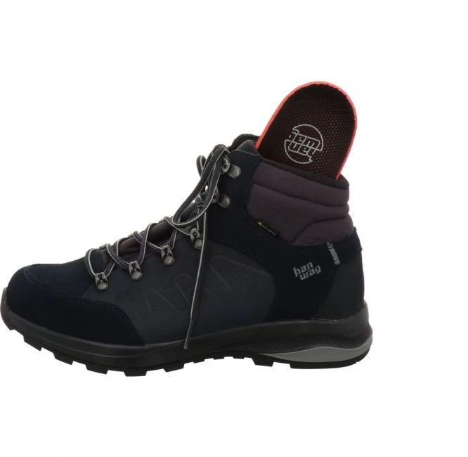 Bequemer Wanderschuh von Hanwag. Das Obermaterial besteht aus hochwertigem Velours- und Nubukleder sowie Textil an Schaft und Zunge. Das Innenfutter ist mit einer atmungsaktiven, wind- und wasserdichten GORE-TEX® Membran ausgestattet. Dank Straight Fit haben Sie mehr Platz und Komfort im Vorfußbereich und einen guten Sitz am Mittelfuß. Mit der griffigen Hanwag Endurance Hike Sohle haben Sie besten Halt auf verschiedensten Untergründen. Die PU-Zwischensohle und der verstärkte PU-Schaumkeil bieten beste Dämpfung. Die Innensohle ist austauschbar. Für Ihren persönlichen Gehkomfort können Sie Ihre eigenen Einlagen einsetzen. Dieses Modell ist der perfekter Partner für einfache Wanderungen, leichte Mittelgebirgstouren und Spaziergänge in die Natur. Sportlich, modisch und komplett in Europa gefertigt.