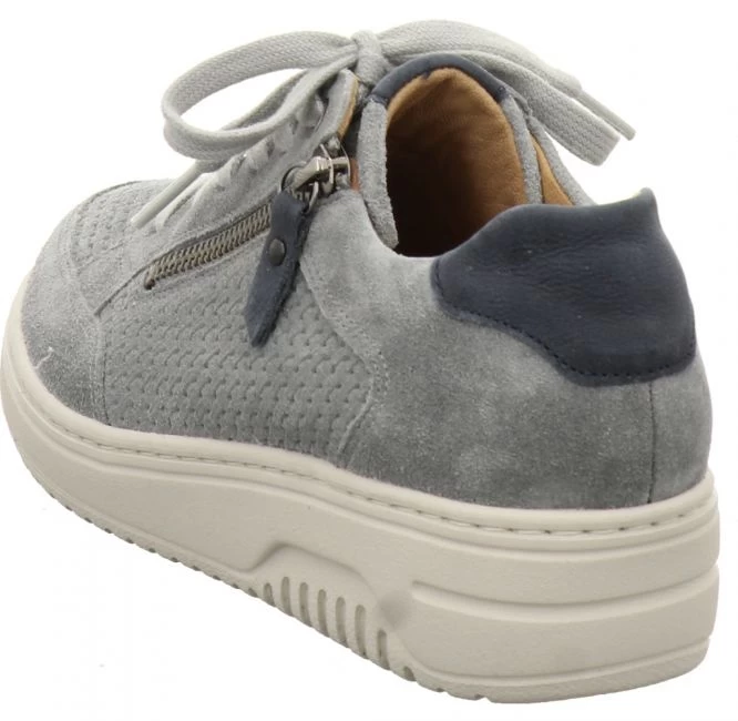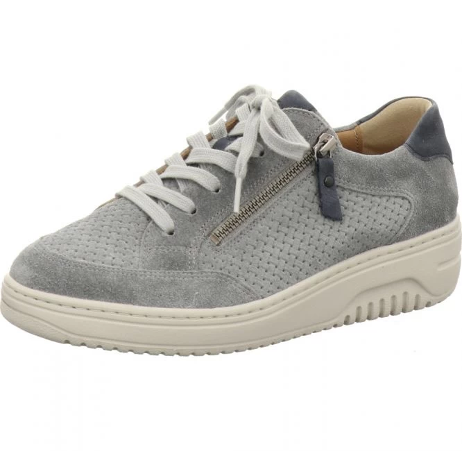 Moderner Sneaker des österreichischen Herstellers Hartjes in Weite K. Das Obermaterial besteht aus hochwertigem Veloursleder. Das Innenfutter wurde aus Leder und atmungsaktivem Dry-Clim gefertigt. Die mit Leder überzogene Korksohle ist austauschbar. Für Ihren persönlichen Gehkomfort können Sie Ihre eigenen orthopädischen Einlagen verwenden. Der seitlich angebrachte Reißverschluss zusätzlich zur Schnürung sorgt für einen leichten Ein- und Ausstieg. Die leichte, flexible und rutschhemmende Sohle bietet jederzeit besten Halt. Sie ist extra dick und modern geprägt. Noch mehr Bequemlichkeit garantiert die komfortable Rundumpolsterung. Für eine moderne Optik sorgen der Einsatz an der Ferse in Kontrastfarbe sowie die Einsätze in Flechtoptik. Ein perfekter Freizeitschuh der sich überaus vielseitig kombinieren lässt!