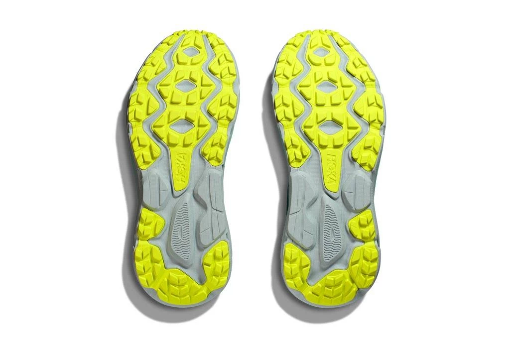 Der HOKA Challenger ATR 7 (Damen) fühlt sich auf festerem Untergrund wie Asphalt oder Parkwegen wie auch abseits befestigter Wege auf Trails wohl. Grund dafür ist seine Außensohlenkonstruktion. Sie ist neu designt und kombiniert unterschiedliche Elemente. So bieten aggressivere und größere Stollen, platziert am Sohlenrand, mehr Grip und Traktion in unebenem Gelände, während kleinere Stollen in der Sohlenmitte auf der Straße für Haftung sorgen.