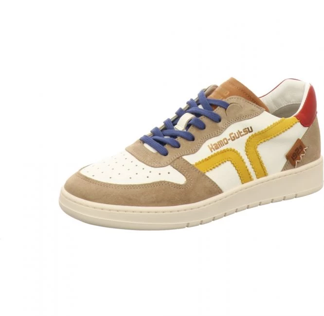 Topmodischer Sneaker des italienischen Labels Kamo Gutsu aus hochwertigem italienischem Leder. Der Mix aus Glatt- und Wildleder in verschiedenen Kontrastfarben machen ihn zum vielseitig kombinierbaren Hingucker. Er verfügt über Volllederfutter und Wechselfußbett. Für Ihren persönlichen Gehkomfort können Sie Ihre eigenen Einlagen verwenden. Stylisch und bequem zugleich. Hergestellt in Italien!