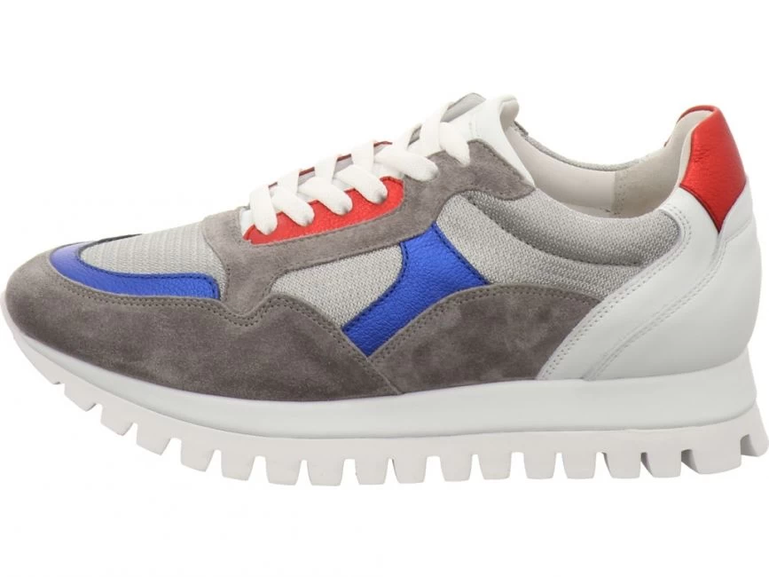Trendiger Sneaker aus dem Hause Kennel und Schmenger. Gefertigt wurde er aus einem angesagten Mix aus Nubukleder, Glattleder und Textileinsätzen. Gefüttert ist er mit hochwertigem Leder. Mit der markanten Sohle haben Sie jederzeit besten Halt. Ein auffälliger und bequemer Sneaker für jeden Tag!