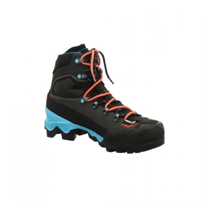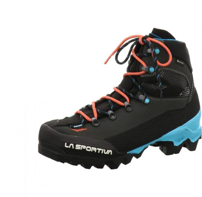 Bergschuh für Wanderungen mit schwerer Last aus dem Hause La Sportiva. Das Obermaterial besteht aus wasserabweisendem Nubuk-Leder und Einsätzen aus abriebfestem Gewebe. Das Innenfutter ist mit einer wasserdichten, winddichten und gleichzeitig atmungsaktiven GORE-TEX® Membran ausgestattet. Die Vibram® SpringLug Tech-Außensohle mit Impact Brake System Stollen sorgen für beste Anpassung auf harten Felsoberflächen. Bester Gehkomfort durch die innovative Fersenkonstruktion Double-Heel. Komfortable Dämpfung und Leichtigkeit durch die externe Schalenkonstruktion Rubber Guard und der Verwendung weniger Gummischichten. Integrierte TPU-Schalen an der Schuhspitze und der Ferse als Schaftverstärkung. Bessere Trittkontrolle durch 3D Flex System Evo-Rotation. Die Zwischensohle ist kompatibel mit halbautomatischen Steigeisen. Dieser Schuh ist perfekt für Backpacking-Touren, mehrtägige Hochtouren und anspruchsvolles Bergsteigen!
