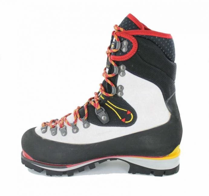 Ein Bergstiefel für anspruchsvolle Touren: Hochalpiner Bergschuh aus 3+ mm Idro-Perwanger-Leder aus einem Stück (wasserabweisend), GORE-TEX° -Duratherm-Klimafutter (wärmehaltend, atmungsaktiv und wasserfest), viel Bewegungsfreiheit im Sprunggelenk, schützende Schneegamasche, Ibi-Thermo isolierende Brandsohle 9 mm, steigeisenfeste VIBRAM° IBS Profilsohle, 2 mm PU-Zwischensohle mit differenziertem Durchmesser. Einsatz: Für Regionen zwischen 3.000 und 5.000 m. Der leichteste und am besten isolierte Schuh aus der NEPAL-Familie! 100% in Italien gefertigt