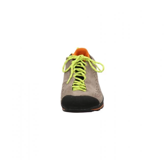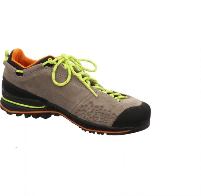 Leistungsfähiger und leichter Zustiegsschuh aus dem Hause La Sportiva. Gefertigt wurde er aus nahezu nahtlosem Veloursleder und PU Tech-Lite an Spitze und Ferse. Die Zunge und das Innenfutter wurden aus atmungsaktivem und rutschfestem Mesh gefertigt. Die Ortholite® Hybrid Einlegesohle ist austauschbar. Für Ihren persönlichen Gehkomfort können Sie Ihre eigenen Einlagen einsetzen. Die Zwischensohle besteht aus recycelter und komprimiertem EVA. Die Vibram® Idrogrip Außensohle mit Climbing Zone und Impact Break System sorgt für besten Grip und Halt. Dieses Modell hat eine asymmetrische, nach vorne gesetzte Schnürung, reibungsfeste Ösen und eine overlap-Zunge und verfügt über das Mythos-Schnürungssystem.