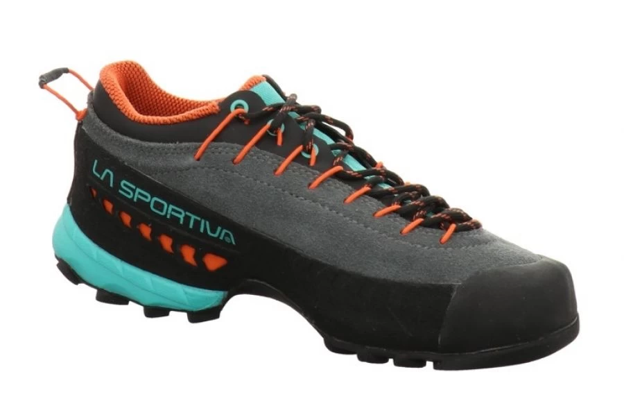 leichter Zustiegschuh mit relativ fester Sohle, Kletterspitze, stabiles Nubukleder und Vibram Haftsohle. Gut sitzende schmale Ferse für besten Halt.