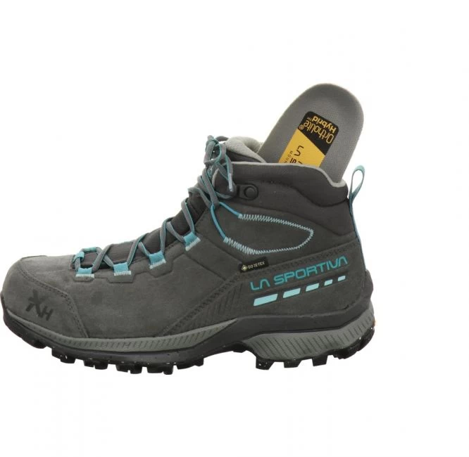 Leichter und komfortabler Wanderschuh von La Sportiva. Das Obermaterial besteht aus hochwertigem Veloursleder mit einem Kragen aus abriebfestem Mesh. Das Futter verfügt über eine atmungsaktive, wind- und wasserdichte GORE-TEX® Extended Comfort Bluesign® Membran. Das Ortholite® Hybrid Mountain Hiking Fußbett ist austauschbar. Für Ihren persönlichen Gehkomfort können Sie Ihre eigenen Einlagen einsetzen. Die Vibram® Eco Step Evo Sohle aus Gummi und die EVA Zwischensohle sorgen für besten Halt und Dämpfung. Durch die Verwendung umweltfreundlicher recycelter Materialien ist er zudem nachhaltig. Ihr bequemer Begleiter für Tageswanderungen.