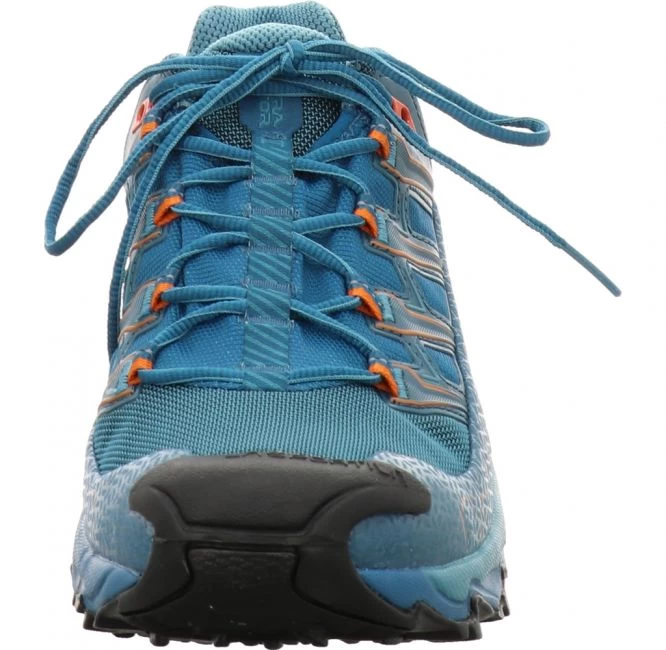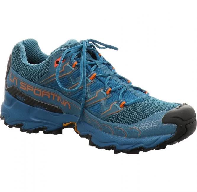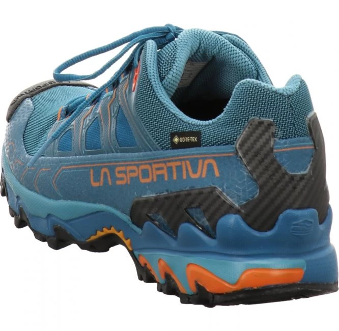 Leichter Trailrunning Schuh von La Sportiva. Das Obermaterial besteht aus atmungsaktivem Air-Mesh-Gewebe mit Verstärkungsstreifen aus Mikrofiber mit reibungsfester Schicht. Das Innenfutter verfügt über eine atmungsaktive wind- und wasserdichte GORE-TEX® Extended Comfort Membran. Das Ortholite® Hybrid Mountain Hiking Fußbett ist austauschbar. Sie können für Ihren persönlichen Gehkomfort Ihre eigenen Einlagen einsetzen. Die Memlex EVA-Zwischensohle sorgt für beste Dämpfung. Mit der stark haftenden FriXion® Sohle mit Impact Brake System und der stoßfesten Zehenkappe aus Gummi haben Sie stets besten Halt und Schutz. Die Schnürung ist in das Obermaterial durch Ösen integriert und durch Hartplastik verstärkt. Ihr perfekter Begleiter für lange Distanzen, auch im Winter, auf jeglichem Terrain.