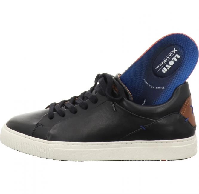 Modischer Sneaker aus dem Hause Lloyd. Das Obermaterial besteht aus hochwertigem Glattleder. Für das Innenfutter wurde ein komfortabler und atmungsaktiver Mix aus Leder und Textil verwendet. Die Innensohle ist austauschbar. Für Ihren persönlichen Gehkomfort können Sie Ihre eigenen Einlagen einsetzen. Die Laufsohle aus Gummi ist rutschfest und federt jeden Ihrer Schritte gekonnt ab. Hingucker sind die Nähte, die Laufsohle und der Einsatz an der Ferse in Kontrastfarbe. Ein sportlicher Sneaker der sich vielseitig kombinieren lässt!