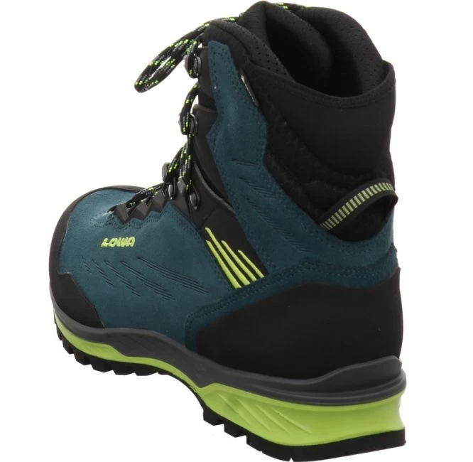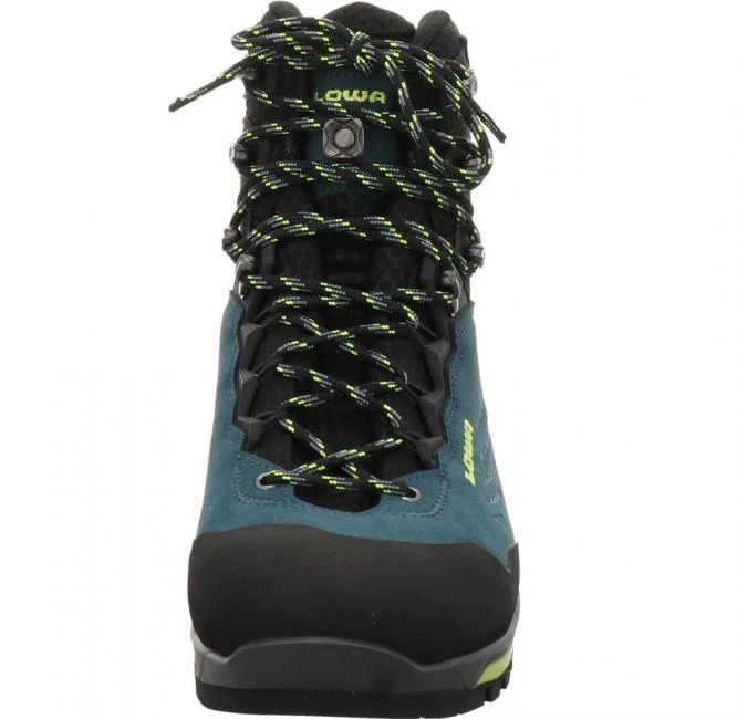Sportlicher Allrounder von Lowa für alpines Gelände und ideal für die meisten Verhältnisse beim Bergsteigen. Das Obermaterial besteht zu 80 Prozent aus hochwertigem Veloursleder und 20 Prozent Textil. Das Innenfutter ist mit einer atmungsaktiven, wind- und wasserdichten GORE-TEX® Membran ausgestattet. Die PU Zwischensohle sorgt für optimale Dämpfung. Dank 2 Zone Lacing lassen sich Vorfuß und Schaftbereich unterschiedlich fest schnüren. X-Lacing® fixiert die Zunge mit den Schnürsenkeln und verhindert so ein Verrutschen der Zunge. Für angenehmes Gehen sorgt die erhöhte Flexibilität des Schaftes durch Flexfit. Die Innensohle aus viskoelastischem Latexschaum ist austauschbar. Für Ihren persönlichen Gehkomfort können Sie Ihre eigenen Einlagen einsetzen. Die Vibram® Alp Trac® Numen Laufsohle mit Climbing Zone an der Sohlenspitze sorgt für besten Halt auf den verschiedensten Untergründen. Der Schuh wurde in klebegezwickter Bauweise gefertigt und weist einen hohen Widerstand gegen Durchbiegung auf. Er ist geeignet für halbautomatische Steigeisen mit Fersenbügel.