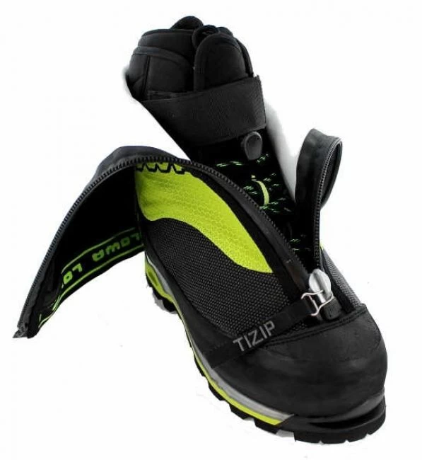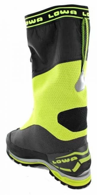 Neu von LOWA: Expeditions-und Höhenbergschuh für Regionen zwischen 6.000 und 7.000 m, jetzt mit herausnehmbarem Innenschuh mit GORE-TEX® Duratherm Ausstattung. Verschiedene Isolationsschichten im Innenschuh, Außenschuh aus abriebfestem Polyamidgewebe, mehrlagige Isolationen u.a. alubeschichtetes PE-Material, Schutzrand aus beschichtetem Leder, abgedeckter Reißverschluss, steigeisenfeste VIBRAM® Dolent Profilsohle, leichtgängige, sehr präzise Schnürung beim Innenschuh. Mit entsprechendem Sockenmaterial, passt der Schuh gut an mittlere und breitere Füße. Gegenüber der normalen Schuhgröße, sollte man hier 1,5 bis 2 Größen zugeben.