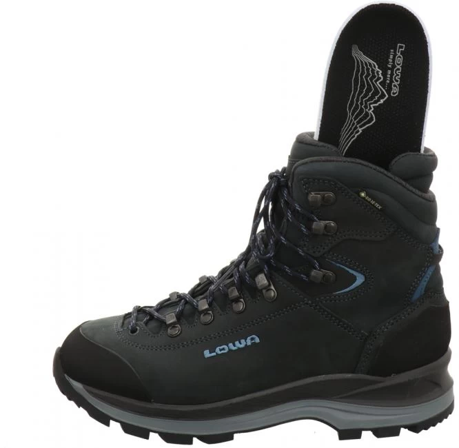 Robuster Trekkingschuh aus dem Hause Lowa der speziell auf die weibliche Anatomie abgestimmt ist. Das Obermaterial besteht aus strapazierfähigem Nubukleder. Das Innenfutter ist mit einer wind- und wasserdichten GORE-TEX® Membran ausgestattet. Die VIBRAM®-Apptrail-Divo-Sohle aus Gummi bietet besten Halt auf den verschiedensten Untergründen und verfügt über ein selbstreinigendes Profil. Das Fußbett aus viskoelastischem Latexschaum ist mit Mesh überzogen und austauschbar. Für Ihren persönlichen Gehkomfort können Sie Ihre eigenen Einlagen einsetzen. Die Zunge mit X-Lacing® verhindert ein Verrutschen der Zunge sowohl vertikal als auch horizontal. Damit der Schuh richtig sitzt, verfügt der Lowa Lady GTX über eine Zwei-Zonen-Schnürung an Schaft und Vorfuß. Die C4-Zungenkonstruktion mit asymmetrischer Polsterung verteilt den Druck ausgewogen. Dieser Schuh weist einen hohen Widerstand gegen Durchbiegung auf. Anziehen, wohlfühlen und raus in die Natur!