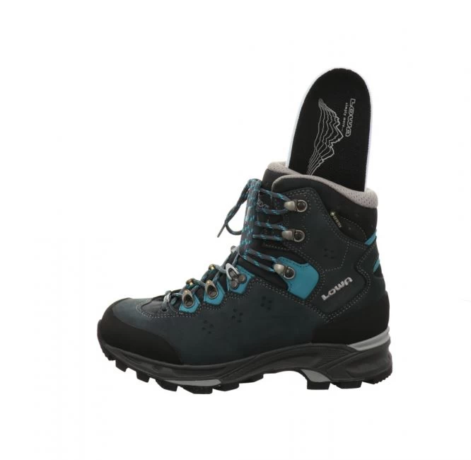 Vielseitiger Trekkingschuh von Lowa. Für eine optimale Passform wurde für dieses Modell ein speziell der weiblichen Anatomie angepasster Leisten verwendet. Gefertigt wurde er aus langlebigem und robustem Nubuk Leder. Das Innenfutter ist mit einer wasserdichten, winddichten und gleichzeitig atmungsaktiven GORE-TEX® Membran ausgestattet. Die austauschbare Innensohle besteht aus viskoelastischem Latexschaum. Durch Körperwärme und Druck passt sie sich exakt an Ihren Fuß an. Für Ihren persönlichen Gehkomfort können Sie Ihre eigenen Einlagen einsetzen. Er verfügt über eine Vibram® Apptrail Sohle mit selbstreinigendem Profil. Sie ist rutschfest, haltbar und überzeugt durch besten Halt auf verschiedenen Untergründen. Dank getrennt einstellbarer Schnürzonen passt sich dieser Schuh der Anatomoie Ihres Fußes perfekt an. Die Zunge wird mit x-lacing® sowohl vertikal als auch horizontal fixiert. Noch mehr Tragekomfort haben Sie durch Flexfit. Durch eine flexible Zone und einem Lace Loop im Bereich der Fußbeuge, lässt sich der Schaft besonders leicht beugen, der Fuß kann besser abrollen. Der Schuh weist eine mittlere Biegesteifigkeit auf. Höchster Gehkomfort und perfekte Passform vereint in einem Schuh!