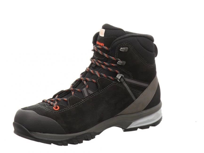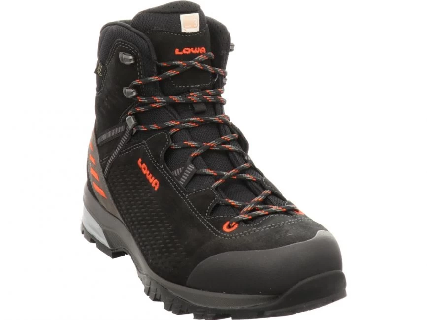 LOWA LEDRO GTX MID M schwarz/flame Leichter Wanderschuh für Mittelgebirge . Gut gedämpfte Vibram Sohle mit griffigem Profil. Beste Atmungsaktivität durch das GORE-TEX Klimafutter in Verbindung mit den Textileinsätzen im Zungenbereich.