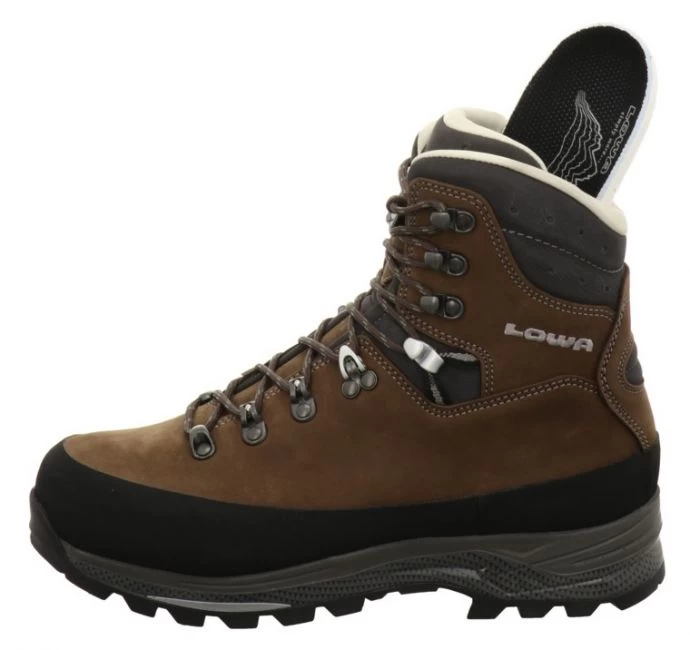 Dieser stabile und robuste Backpacking-Schuh von Lowa hat sich auf den härtesten Trekkingtouren der Welt und auf zahllosen Mehrtages-Bergtouren in den Alpen bewährt. Auch auf Klettersteigen ist der TIBET zu Hause. Für Stabilität sorgt der 2,5-mm-Nubuklederschaft im Ganzschnitt. Das LOWA FlexFit System erlaubt natürlichen Bewegungsspielraum im Sprunggelenk. Die Abschlüsse an Schaft und Zunge sind extrem weich. Perfekte Anpassung durch Lace Loop Technik und patentierten I-Lock Klemmhaken zur komfortablen Fixierung der Zwei-Zonen-Schnürung. Das hochwertige Lederfutter bietet ein angenehmes Fußklima mit viel Tragekomfort. Mit der Vibram® Laufsohle Masai mit groben Brems- und Abstoßstollen sowie einem selbstreinigenden Bergschuhprofil ist eine herausragende Griffigkeit auf allen Untergründen garantiert. Die aufwendige Zwischensohlenkonstruktion sorgt für hohen Gehkomfort und der im Vorfuß etwas breitere Leisten mit leicht erhöhter Zehenbox garantiert eine perfekte Passform. Der Schuh aus hochwertigsten Materialien ist für Steigeisen mit Riemenbindung geeignet.