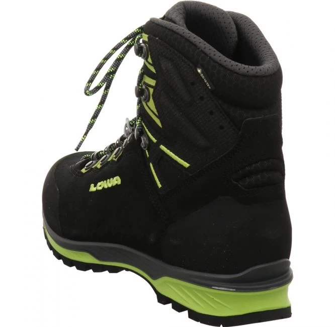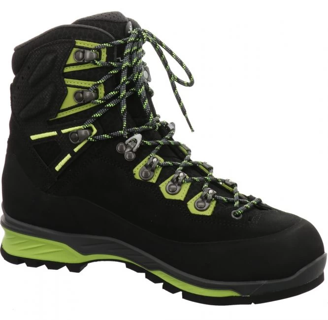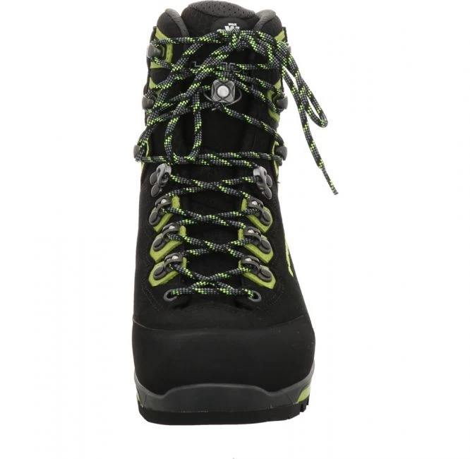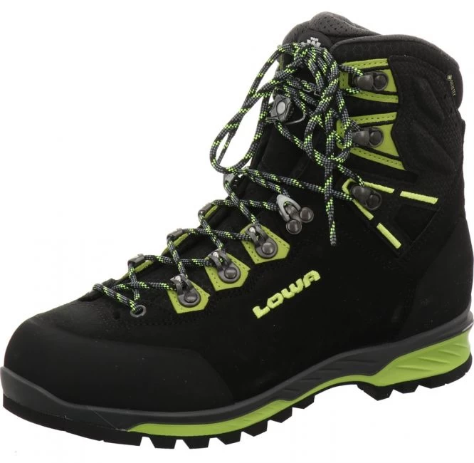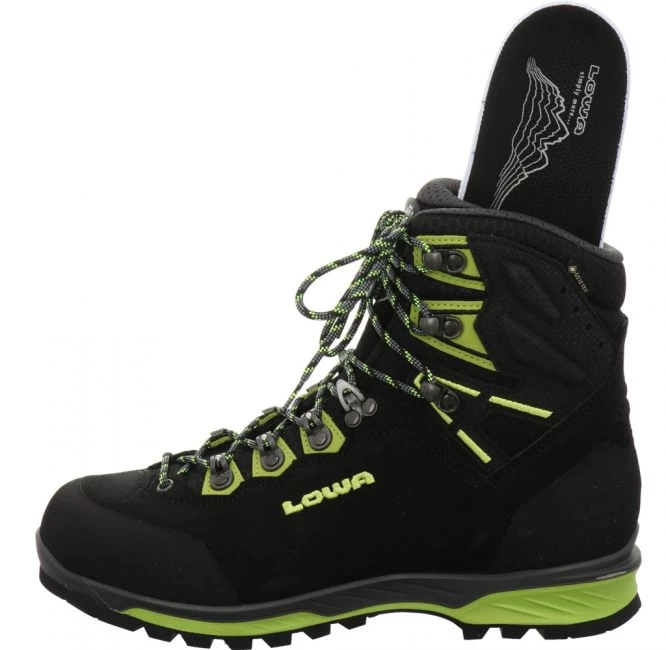 Robuster und vielseitiger Trekkingschuh für ambitionierte Bergsteiger von Lowa. Dieses Modell ist dank W-Leisten perfekt für breitere Füße da es über mehr Volumen im Vorfußbereich verfügt. Das Obermaterial besteht aus Veloursleder mit Einsätzen aus Textil am Schaft. Die atmungsaktive, wind- und wasserdichte GORE-TEX® Membran sorgt jederzeit für warme und trockene Füße. Das Fußbett aus viskoelastischem Latexschaum ist austauschbar. Für Ihren persönlichen Gehkomfort können Sie Ihre eigenen Einlagen einsetzen. Die Vibram Alp Trac® Numen Laufsohle aus Gummi sorgt für besten Halt in alpinen Bedingungen. Die Climbing Zone an der Sohlenspitze ermöglicht ein präzises Antreten bei leichten Kletterpartien. Dank getrennt einstellbarer Schnürzonen passt sich dieser Schuh der Anatomie Ihres Fußes perfekt an. Damit die Schnürsenkel leicht durch die Ösen laufen, minimieren kleine Kugeln in den Metallschlaufen die Reibung. Die Zunge wird mit x-lacing® sowohl vertikal als auch horizontal fixiert. Noch mehr Tragekomfort haben Sie durch Flexfit und Lowa Flex® um Druckstellen zu minimieren. Die C4-Tongue Zungenkonstruktion mit asymetrischer Polsterung sorgt für eine bessere Druckverteilung. Dieser Schuh ist für halbautomatische Steigeisen mit Fersenbügel geeignet.