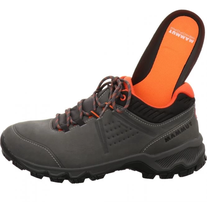 Leichter Halbschuh aus dem Hause Mammut. Das Obermaterial besteht aus hochwertigem terracare® Nubuk Leder welches in Deutschland nachhaltig hergestellt wurde. Das Innenfutter verfügt über eine atmungsaktive, wind- und wasserdichte GORE-TEX® Membran. Das Fußbett ist austauschbar. Für Ihren persönlichen Gehkomfort können Sie Ihre eigenen orthopädischen Einlagen einsetzen. Die Polsterung mit 3D Memo Foam rund um den Knöchel, schützt optimal. Die Vibram® Sohle aus Gummi gibt besten Halt auf den verschiedensten Untergründen. Ihr perfekter Begleiter auf Wanderungen in unwegsamem Gelände, in der Stadt und bei sämtlichen Freizeitaktivitäten.