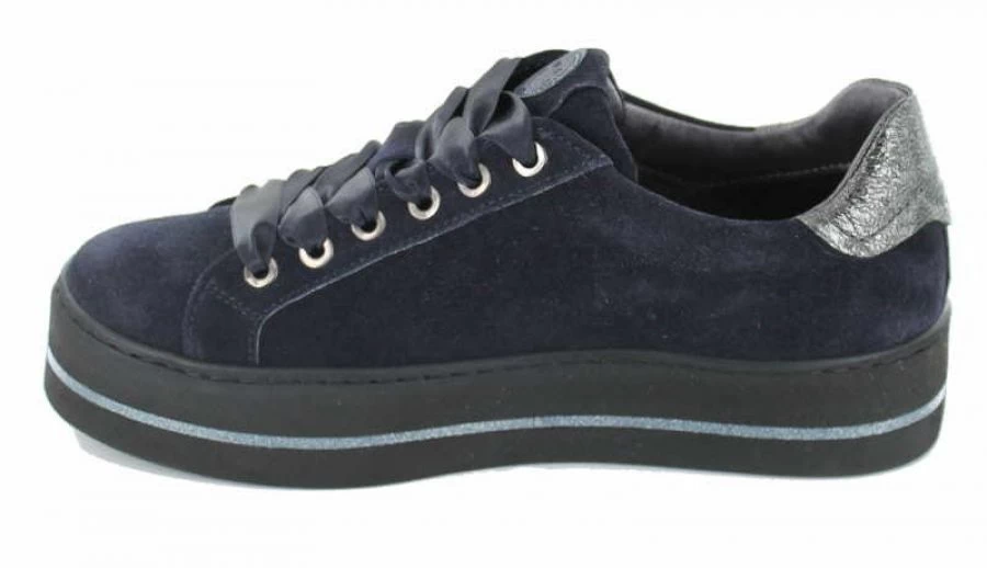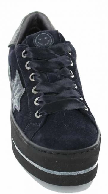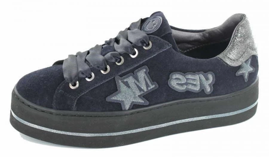 Ein absolutes It-Piece sind diese trendigen Sneaker der spanischen Marke Maripé. Modische und glitzernde Patches verzieren den Schuh und runden den Look ab. Ein absoluter Hingucker ist der Glitzerstreifen in der Plateau-Sohle. Die feine Satin-Schnürung verleiht dem Modell eine feminine Note.