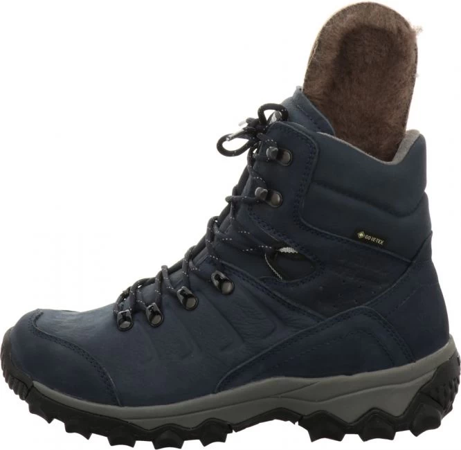 Klassischer Winter-Wanderschuh von Meindl. Das Obermaterial besteht aus hochwertigem Nubukleder. Er ist mit einem kuscheligen Mix aus Schurwolle und Webpelz gefüttert und verfügt über eine wind- und wasserdichte Gore-Tex Membran. Das austauschbare Korkfußbett ist ebenfalls mit Webpelz bezogen. Für Ihren persönlichen Gehkomfort können Sie Ihre eigenen Einlagen verwenden. Die Laufsohle aus Gummi mit EVA-Dämpfungskeil verspricht jederzeit besten Halt. Der Meindl Finero schützt Ihre Füße selbst bei tiefsten Temperaturen zuverlässig vor Nässe und Kälte.