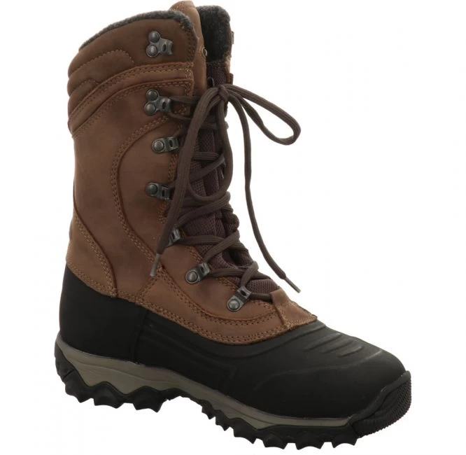 Warmer Wanderschuh von Meindl. Das Obermaterial besteht aus gewachstem Nubukleder und Mesh. Das Futter aus Lammfell verfügt über eine atmungsaktive, wind- und wasserdichte GoreTex® Membran. Ihre Füße bleiben bis minus 30 Grad warm und trocken. Das mit Lammfell überzogene Fußbett ist austauschbar. Für Ihren persönlichen Gehkomfort können Sie Ihre eigenen Einlagen einsetzen. Die Ultra Grip Sohle sorgt jederzeit für besten Halt bei winterlichen Gegebenheiten. Die Schafthöhe beträgt 22 cm. Einsteigen, wohlfühlen und den Winter mit warmen Füßen genießen!