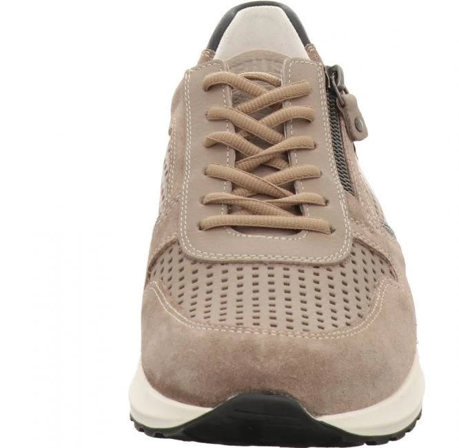 Sportlicher Sneaker aus dem Hause Mephisto. Obermaterial und Innenfutter bestehen aus hochwertigem Leder. Modisches Highlight sind die Einsätze aus luftig perforiertem Leder und Einsätzen aus Velours- und Glattleder. Ebenfalls ein Hingucker sind die Einsätze und die Laufsohle in Kontrastfarbe. Für einen leichten Ein- und Ausstieg sorgt der seitliche Reißverschluss zusätzlich zur Schnürung. Das mit Leder überzogene Fußbett ist austauschbar. Für Ihren persönlichen Gehkomfort können Sie Ihre eigenen orthopädischen Einlagen einsetzen. Die Laufsohle besteht aus Gummi und verfügt über einen Shock Absorber. Dieser vielseitige Schuh ist mit Soft-Air-Technologie ausgestattet. Harte Auftrittsstösse werden reduziert, Gelenke und Wirbelsäule werden geschont. Ein luftig leichter Schuh für warme Tage!