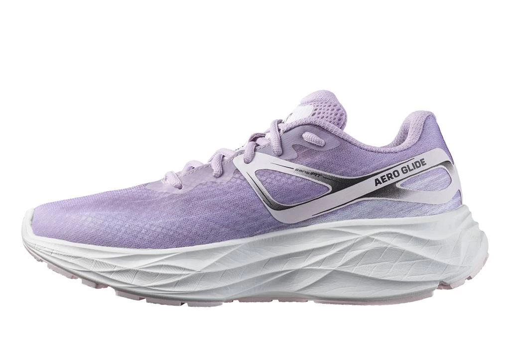 Auf den ersten Blick fällt die Sohlendicke des SALOMON Aero Glide (Damen) auf. SALOMON setzt in der Zwischensohle des Aero Glide auf einen Dämpfungsschaum mit hoher Energierückführung. Zusammen mit der Rocker-Konstruktion wird so eine gleichmäßige und komfortable Abrollbewegung unterstützt. Der Neutralschuh bietet beim Laufen eine gelungene Mischung aus Führung und Dynamik.