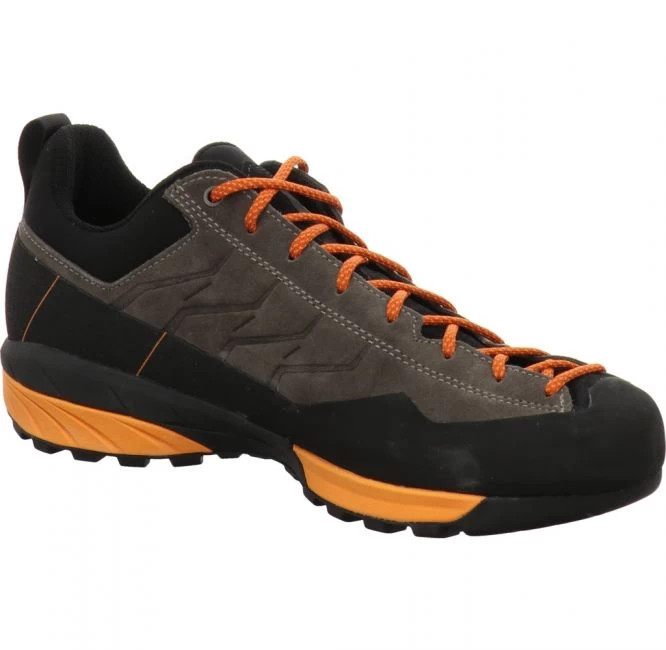 Der Klassiker für technische Zustiege, leichte Kletterei und Klettersteige aus dem Hause Scarpa. Das Obermaterial besteht aus wasserabweisendem Suede Leder. Zunge und Schaftabschluss wurden aus weichem Stretch Textil gefertigt. Der leichte und robuste Geröllschutzrand aus PU Tech und die Gummizehenkappe sorgen für besten Schutz. Dank der EVA-Zwischensohle bietet dieser Schuh mehr Stabilität. Das erweiterte Schnürsystem welches bis zu den Zehen reicht sorgt für bestmögliche Passform. Die Dynamics LB Sohle mit Vibram® Lite Base Technologie aus Vibram® Megagrip Gummi sorgt jederzeit für optimalen Halt. Die Innensohle ist austauschbar. Für Ihren persönlichen Gehkomfort können Sie Ihre eigenen Einlagen einsetzen. Ein Schuh der hohen Tragekomfort und Schutz bietet und gleichzeitig auch optisch ansprechend gestaltet ist.