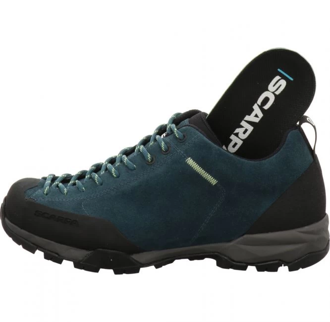 Vielseitiger Multifunktionsschuh aus dem Hause Scarpa. Das Obermaterial besteht aus wasserabweisendem Suede Leder mit einer schützenden Zehenkappe aus Gummi. Das Innenfutter verfügt über eine komfortable und atmungsaktive 37.5® Technologie. Das erweiterte Schnürsystem welches bis zu den Zehen reicht sorgt für bestmögliche Passform. Die gut dämpfende SALIX Laufsohle mit EVA-Zwischensohle sorgt für maximalen Komfort und Passform. Das Fußbett ist herausnehmbar. Für Ihren persönlichen Gehkomfort können Sie Ihre eigenen Einlagen einsetzen. Der Mojito Trail ist Ihr perfekter Partner für leichte Wanderungen, Spaziergänge oder auch Städtetrips.