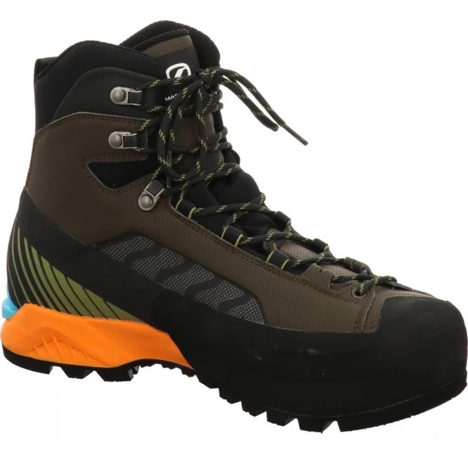 Leichter Bergschuh aus dem Hause Scarpa. Das Obermaterial besteht aus Mikrofaser mit wasserabweisendem Textil. Die Sock-Fit XT Konstruktion legt sich um Ihren Fuß wie eine Socke. Das komfortable und wasserdichte 37.5® Futter ist mit HDry® laminiert. Ein PU Rand aus Gummi im äußeren Bereich des Schuhs schützt optimal. Die Haken und Schnürlaschen haben mehrere Zugbereiche, die den Fuß bestmöglich stützen und für beste Anpassung sorgen. Das Fußbett ist herausnehmbar. Für Ihren persönlichen Gehkomfort können Sie Ihre eigenen Einlagen einsetzen. Die leichte und hervorragend dämpfende Precision Tech Roll Sohle aus Vibram® Gummimischung sorgt für Stabilität und besten Halt. Dieser Schuh ist mit Steigeisen verwendbar. Der Ribelle ist Ihr perfekter Begleiter für Klettersteige und Wanderungen mit schwerem Gepäck.