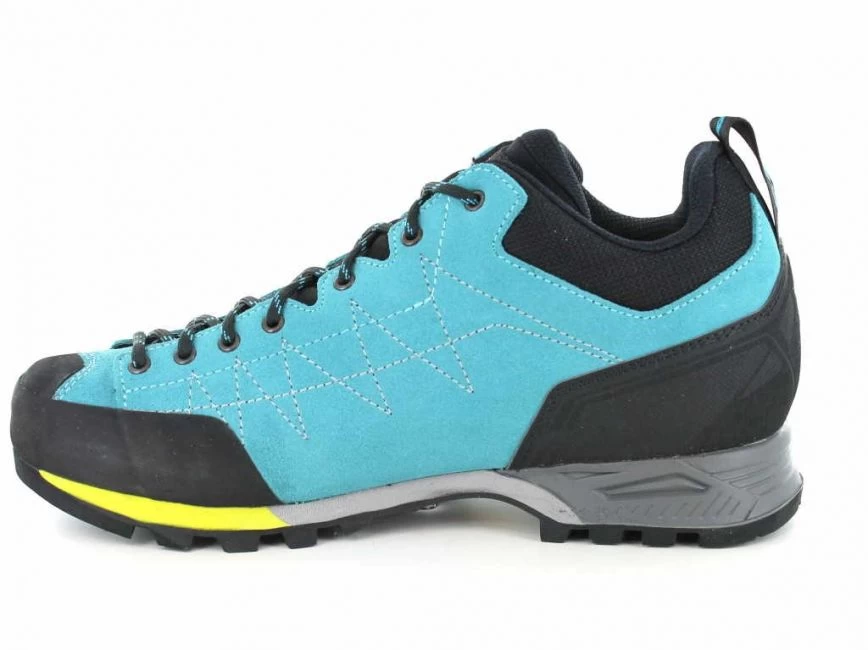 Superrobuster, kantenstabiler Damen-Approach-Schuh aus Bergschuh- Oberleder und mit Bergschuh-Sohle. Überragende Paßform durch Sockfit -Elastikzunge, perfekt für Zustiege, Klettersteige oder auch als Alltagsschuh.